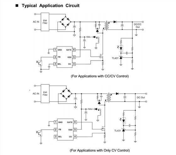 6.內(nèi)置PWM振蕩電路,并設(shè)有抖頻功能,保證了良好的EMC特性。